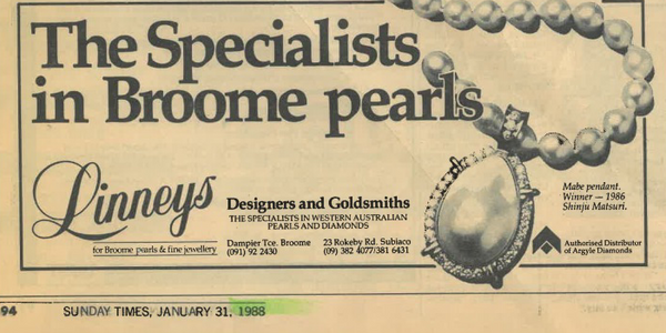1987 was when the America’s Cup was hosted in Perth. Many international and interstate clients visited Linneys to learn about Australian South Sea Pearls during this time.