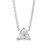 This 18ct white gold diamond pendant features a pear cut diamond. The pendant is on a 42cm white gold trace chain finished with a cartier clasp.