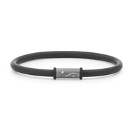 Crafted in tantalum, this modern design features two spacers with a brushed finish and a 0.01 carat diamond, separated by a neoprene O ring. The neoprene measure 4.5mm thick.