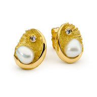 Handcrafted in 18ct white or yellow gold, this detailed seahorse design cradles a South Sea seedless pearl in its delicate tail.