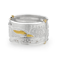 - Squeeze your thumb to your palm and roll the bangle over your hand onto your wrist. Rotate so that the component is on the top of your wrist.