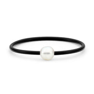 1. Hold the bangle so that the pearl and/or component sits in the palm of your hand to avoid it catching on any rings.
