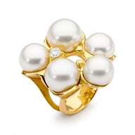 Crafted in 18ct white gold, this pearl and diamond ring features 11-14mm near round Australian South Sea cultured pearls set in a cluster with round brilliant cut diamonds.