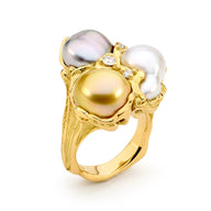The best of all worlds, the ring is handcrafted from 18ct white gold, features a yellow gold nugget and a 10-11mm Australian South Sea pearl.