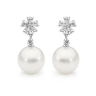 Crafted in 18ct white gold, the earrings feature two South Sea pearls set onto articulated posts. Adding an element of sparkle to the elegant design, the earrings also feature marquise and round brilliant cut diamonds, total 0.65 carats. These earrings are fitted with 18ct white gold posts and secured with a butterfly fastening.