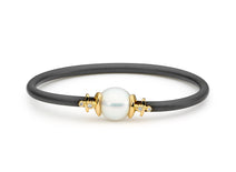 - Hold the bangle so that the pearl and/or component sits in the palm of your hand to avoid it catching on any rings.