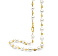Handcrafted in 18ct yellow and rose gold, this neoprene bangle features an Australian South Sea Cultured Seedless Pearl with round brilliant cut pink and diamonds.