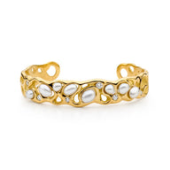 - Hold the bangle so that the pearl and/or component sits in the palm of your hand to avoid it catching on any rings.