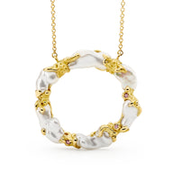Handcrafted in 18ct yellow, white and rose gold, this pendant features an Australian South Sea Cultured Pearl with round brilliant cut pink and white diamonds.